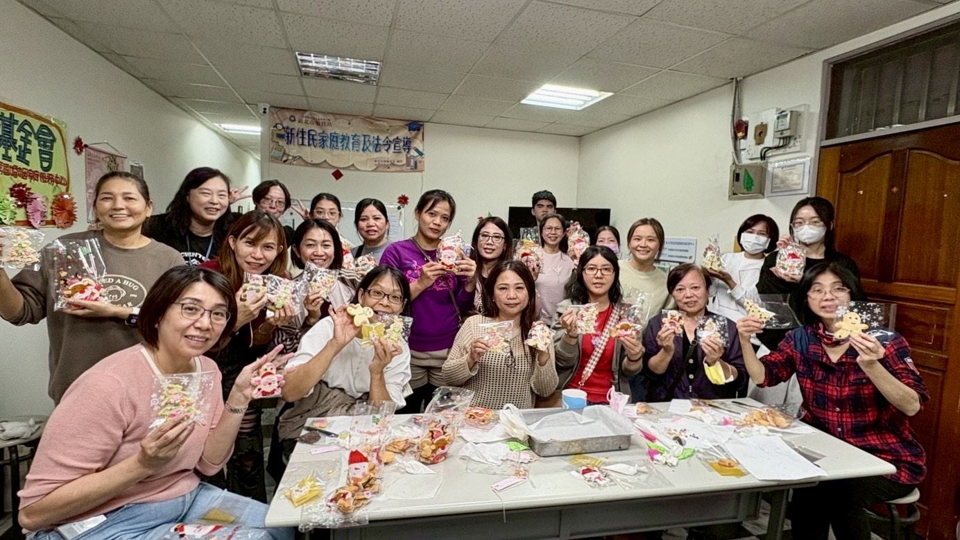 移民署北區事務大隊新北市服務站日前與財團法人善牧基金會新北市西區跨國婚姻家庭中心,共同舉辦家庭教育課程,於此歲末之際,以「心裡有光,手裡有愛」為主軸,帶領新住民學員,將親手製作的聖誕餅乾當作禮物,送給家人來表達心中的感謝。課程一開始由講師張翠芬老師用「家庭溫暖賓果」遊戲開場,讓參與的學員寫下過去一年經歷的事情,藉由回顧過程看見自己的付出,也看見家人給予的溫暖。課程引導學員對自己和家人表達感謝,感恩生活中的日常能讓人變得更加正面,無論是多麼小的事情,只要仔細觀察並記錄下來,更容易提升幸福感。