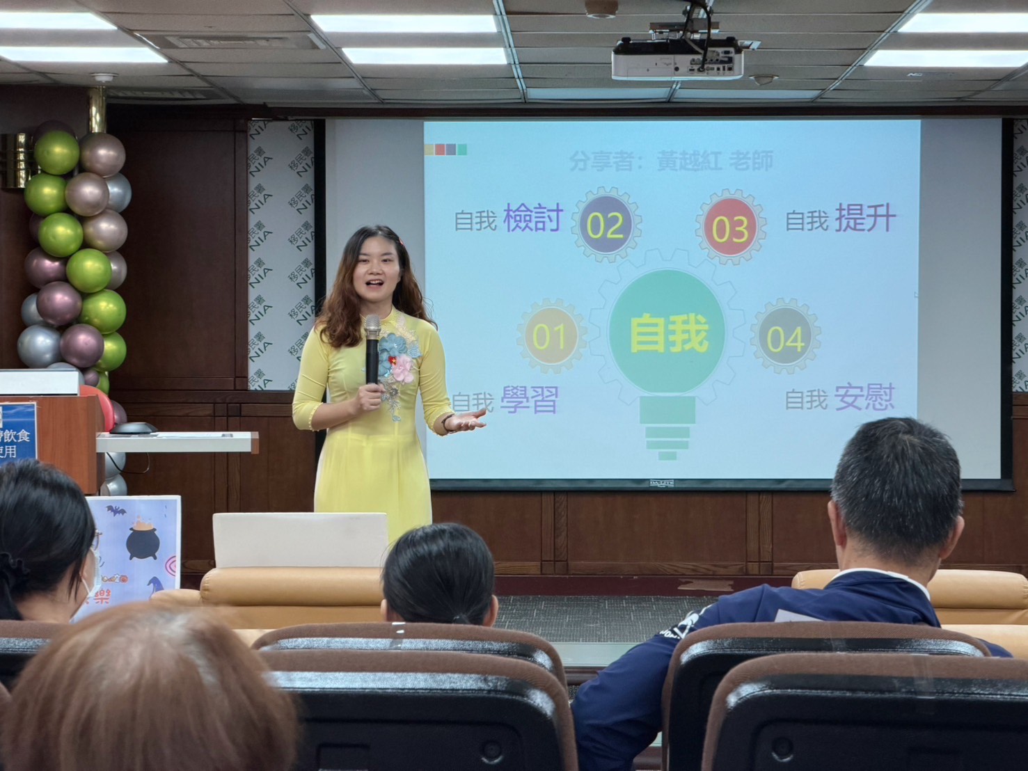 越紅分享,自己深刻感受到臺灣社會對專業與證照的重視,因此不斷考取越南語導遊執照、華語能力測驗流利級與越南語教學合格證書,更持續在臺灣師範大學的東亞系攻讀研究所學位,並在全國新住民語文教育輔導團中擔任越南語顧問,展現自我突破與終身學習之精神,不僅鼓勵新住民朋友藉此找回自我價值,也深化越南語教育在臺灣交流與共融。