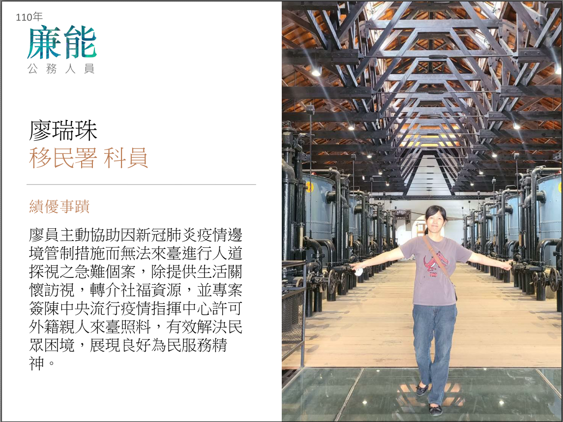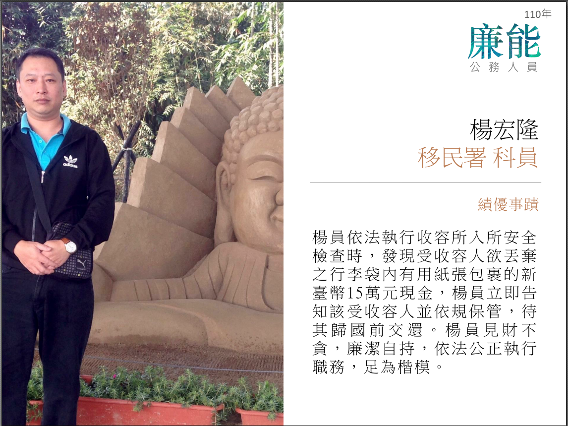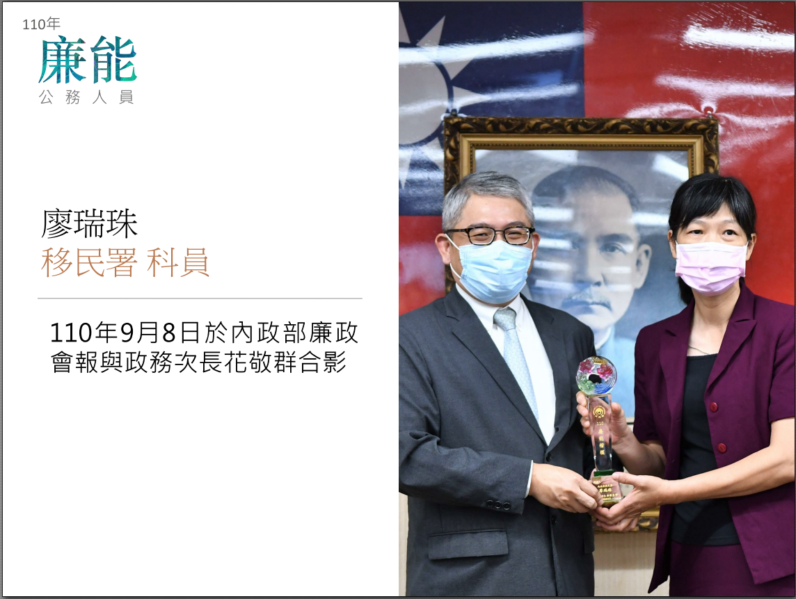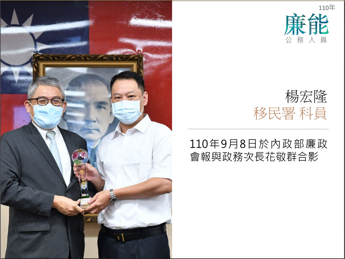 110年內政部所屬機關學校廉能公務人員績優事蹟專輯和受獎照片