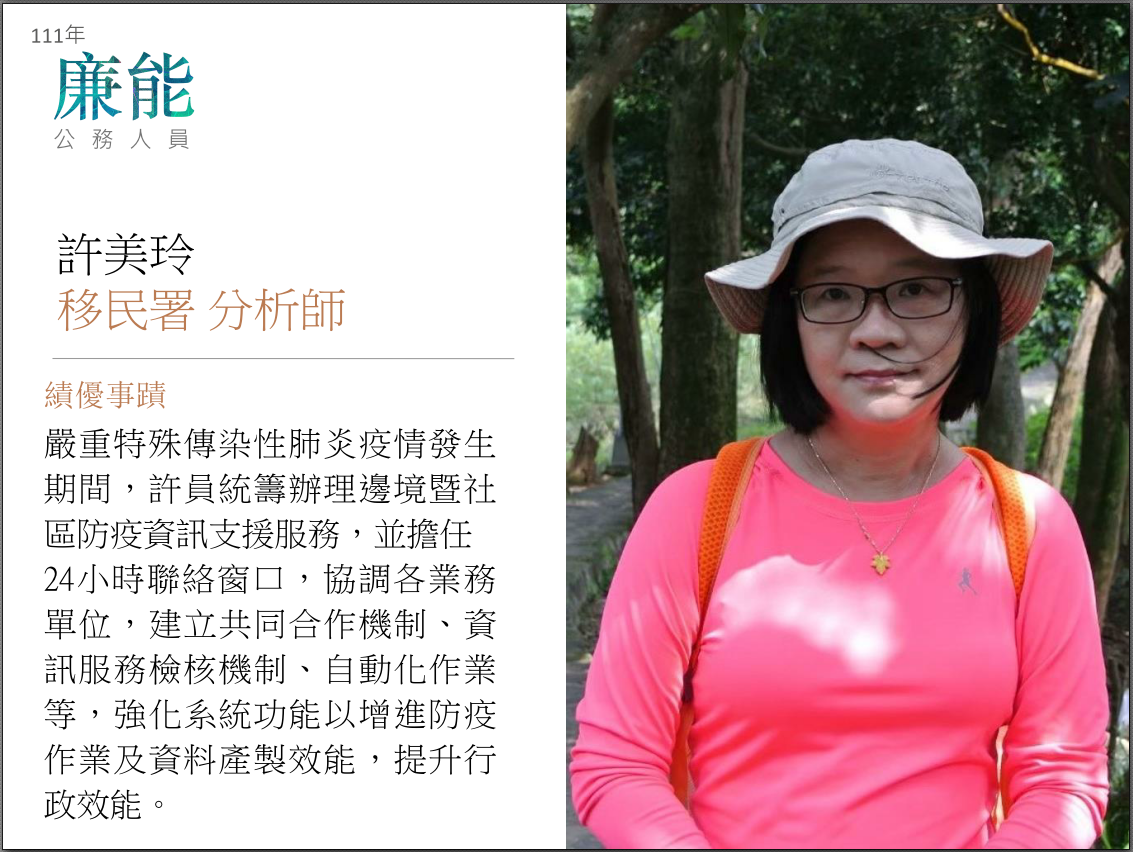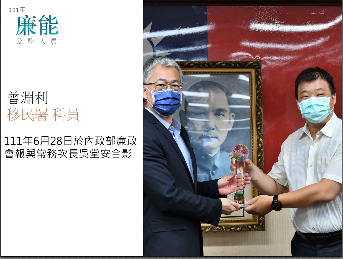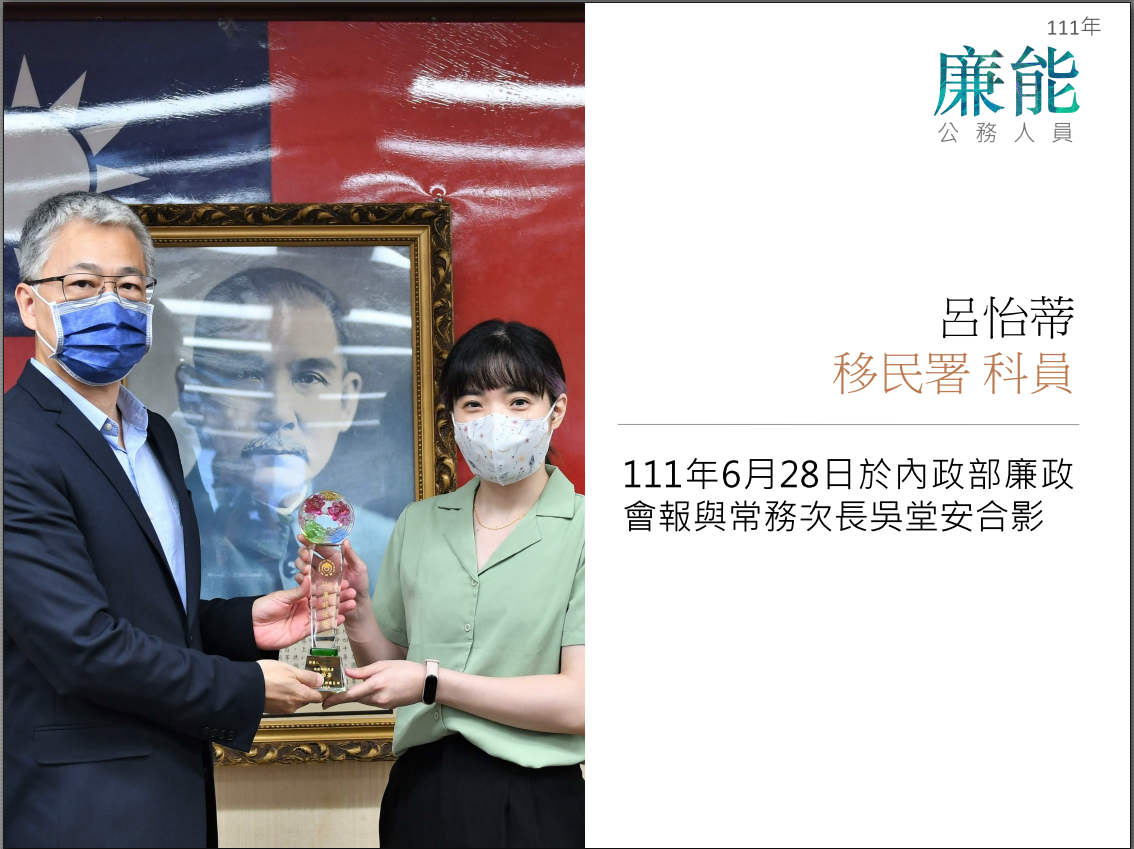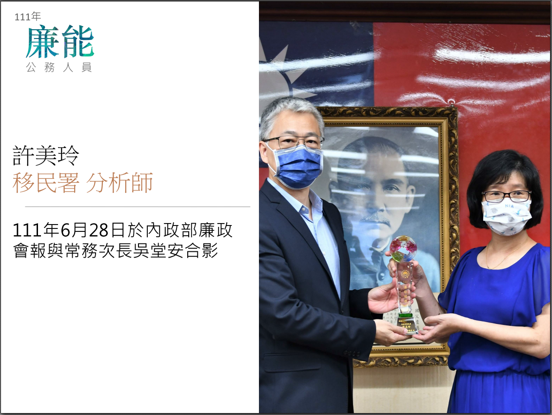111年內政部所屬機關學校廉能公務人員績優事蹟專輯和受獎照片